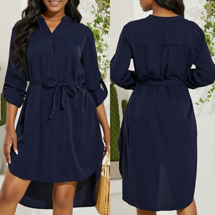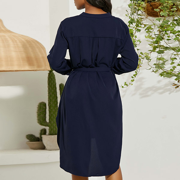 Don't know what to wear on your busy workdays? Then you can have a look at this shirt dress. It boasts a solid color,finished with long sleeve,stand collar and a high-low hem design,this dress knows how to give you a delicate yet stylish working look. Comes with a waist strap design,which can better highlight your waistline. Add it to your wardrobe and it won't let you disappointed!