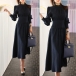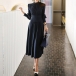 OL Style Long Sleeve Stand Collar High Waist Solid Color Dress