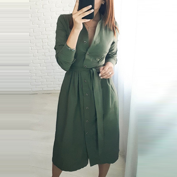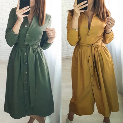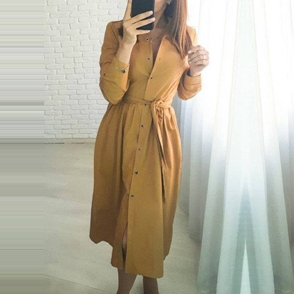 For these office ladies,this delicate yet stylish shirt dress is their wise choice. Solid color style,finished with long sleeve,stand collar and single-breasted design,this shirt dress knows how to portray your elegant and confident side. Perfect fit for your workdays.