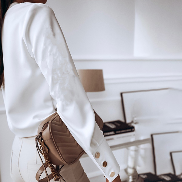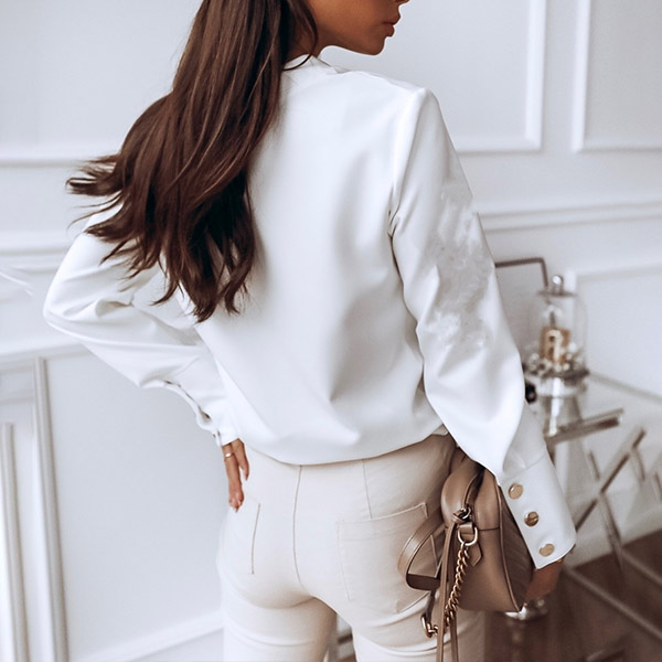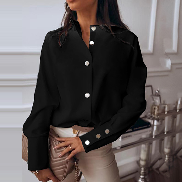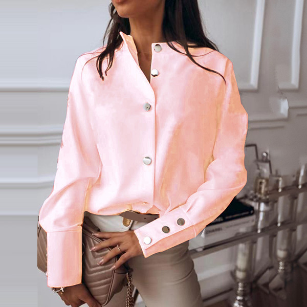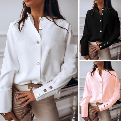 For these office ladies,a stylish and all-match shirt is an essential. So how about this piece? Solid color style,finished with long sleeve and stand collar design,simple yet stylish. The metal button design will make it look more attractive. You can match it with your favourite bottom to start your wonderful day.