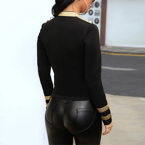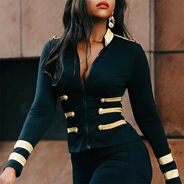 When the days get a little cold,this coat can be your wise choice. It is finished with long sleeve,stand collar and a fit silhouette,delicate yet stylish. Moreover,the unique waist design will make this piece look more attractive. When matching with your high waist flared pants,you can look charming and stylish enough!