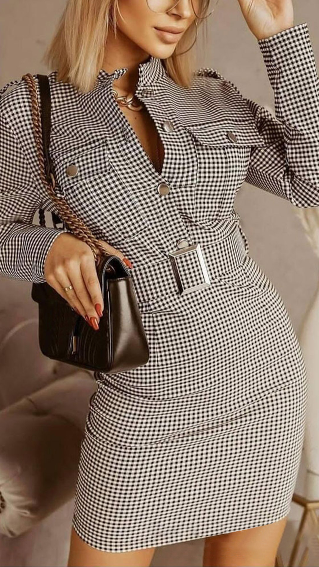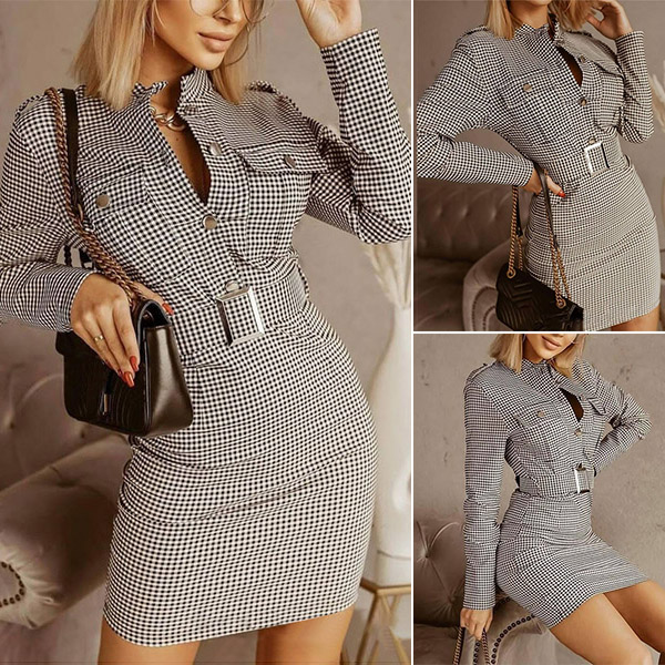 For these office ladies,this delicate yet stylish dress would easily strike your mind. The plaid element design makes it look so stylish and popular. Finished with long sleeve,stand collar,a fit silhouette and waistband design,this dress not only can showcase your slender figure,but also can exude your style and charm.