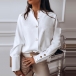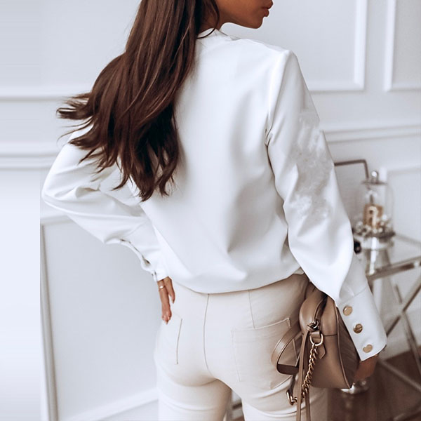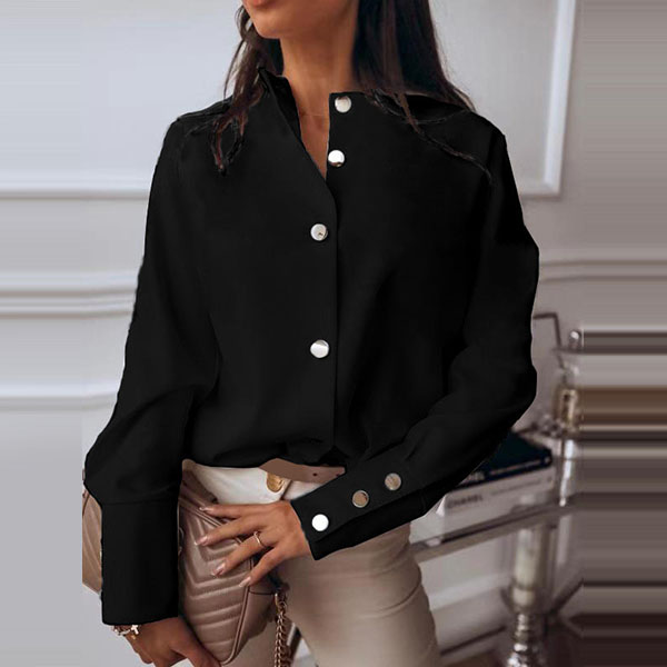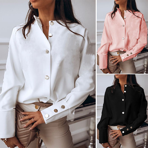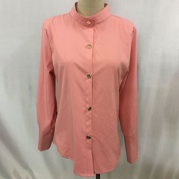 For your workdays,this shirt would easily strike your mind. Solid color tone design makes it look simple yet stylish and generous. Finished with long sleeve,stand collar and single-breasted design,this shirt can give you a delicate yet charming working look.
