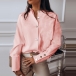 OL Style Long Sleeve Stand Collar Solid Color Shirt