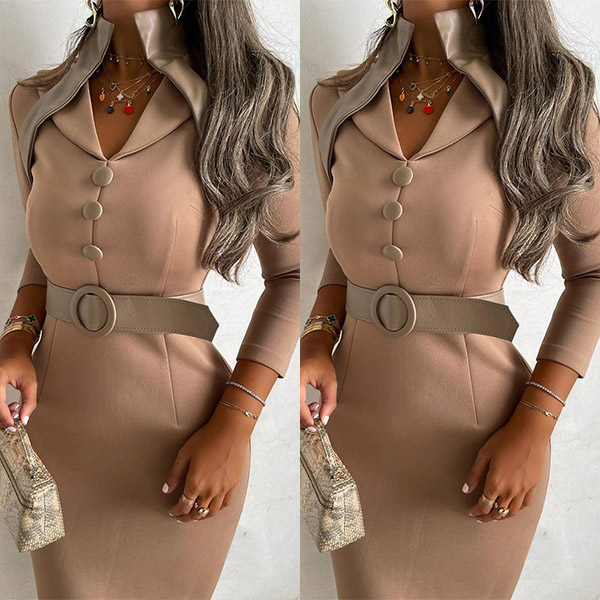 As for these office ladies,such as delicate yet elegant dress is their wise choice. The unique stand collar makes this piece look so distinctive and stylish,while the fit silhouette design can better portray your slender figure. Dress it up with your favourite heels to express your beauty and charm.