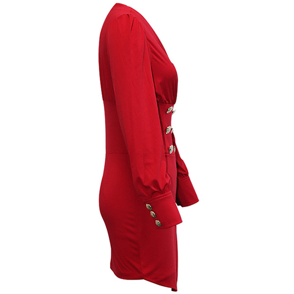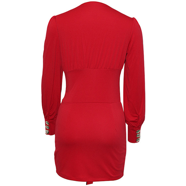 For these office ladies,this delicate yet stylish dress can easily strike their mind. Solid color style,finished with long sleeve,v-neck,double-breasted and a fit silhouette,this dress not only can showcase your slender figure,but also can portray your elegant,confident image. So why not buy one?