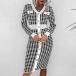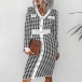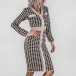For your working occasions,this delicate yet stylish knit dress would be your perfect choice. The contrast color element and Houndstooth element design make it look so popular and attractive. Finished with long sleeve,v-neck,single-breasted and a fit silhouette,this dress also can showcase your figure as well as your femininity.