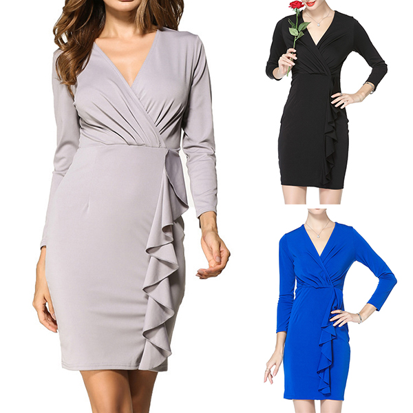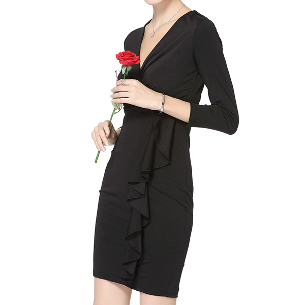 perfect sketch out your graceful and slender curve,while the v-neck and ruffle design will further enhance your female appeal.