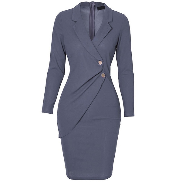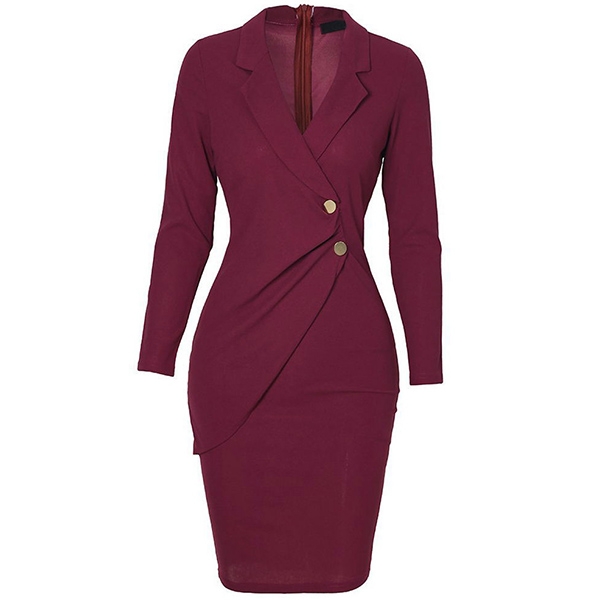 OL Style Long Sleeve V-neck Solid Color Slim Fit Dress