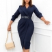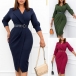 OL Style Long Sleeve V-neck Solid Color Slim Fit Dress with Waistband