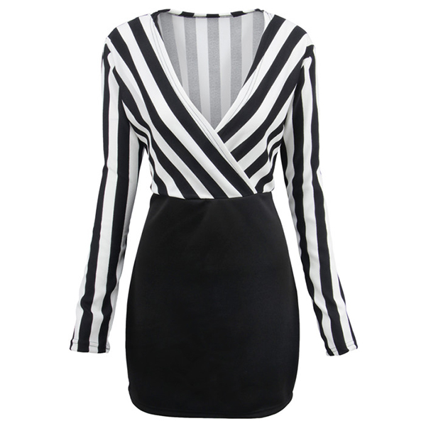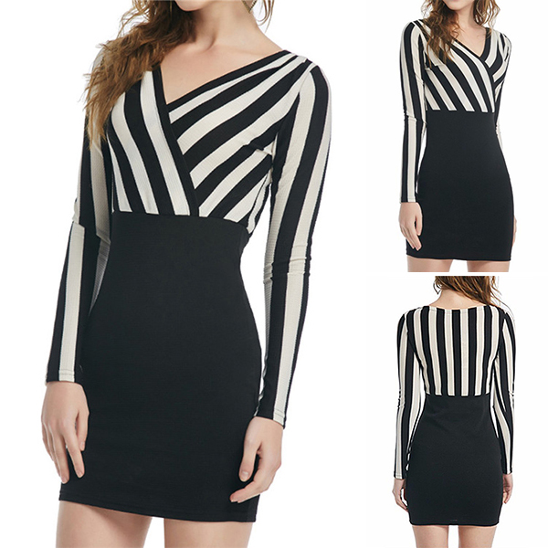 Showcasing your confident side and female charm is an easy thing if you have this dress on hand. Striped spliced style,