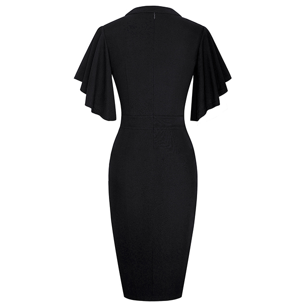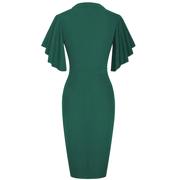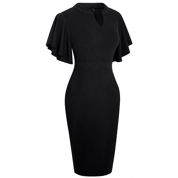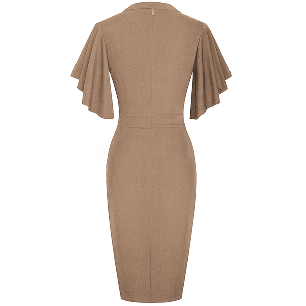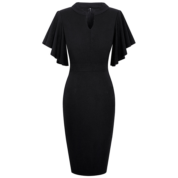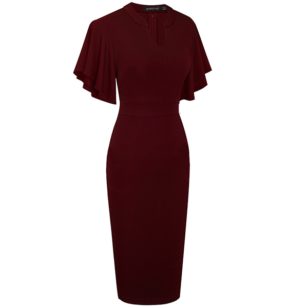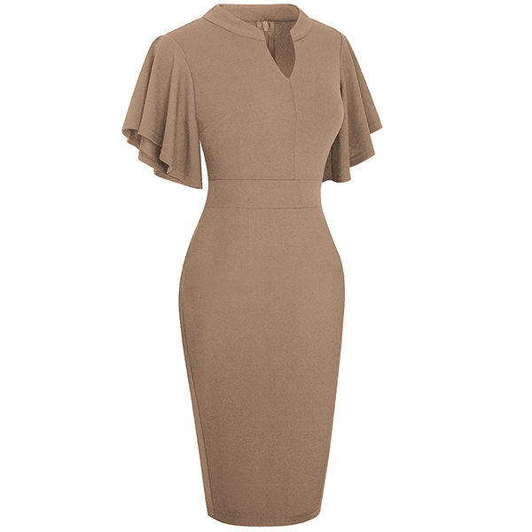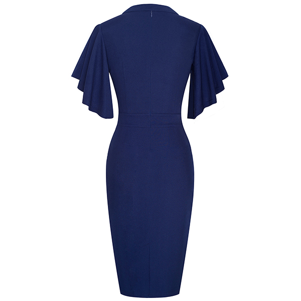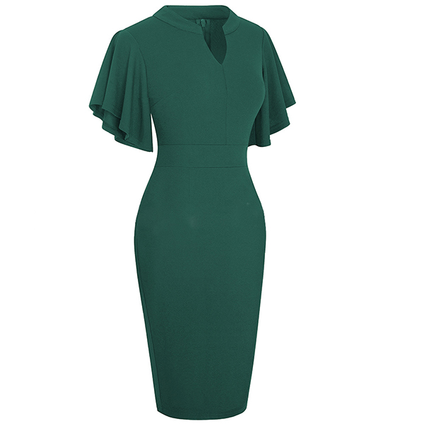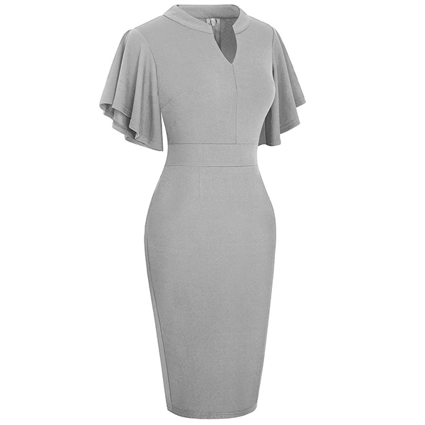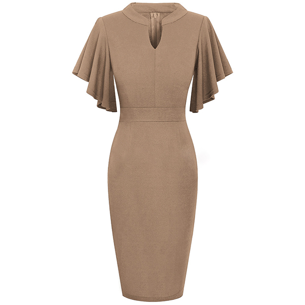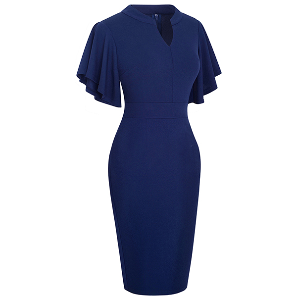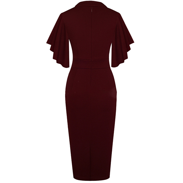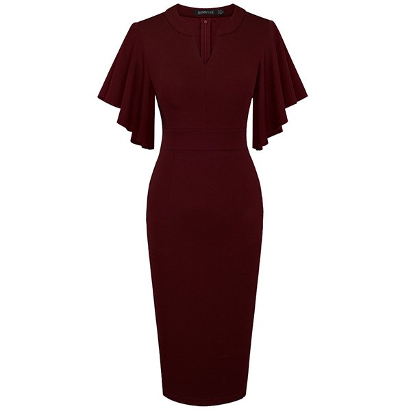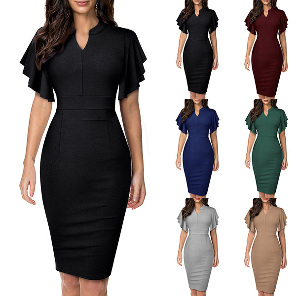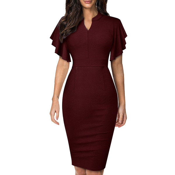 Wanna a delicate and elegant working look? Then you can have a look at this dress. It comes with a solid color,the lotus sleeve design can lend you a dash of sweet vibes. Finished with v-neck,high waist and a fit silhouette,this dress can showcase your slender figure as well as portray your elegant and charming image.