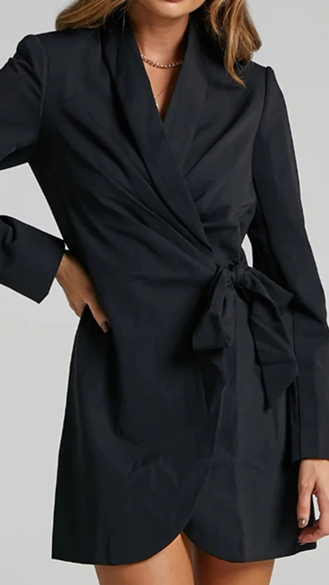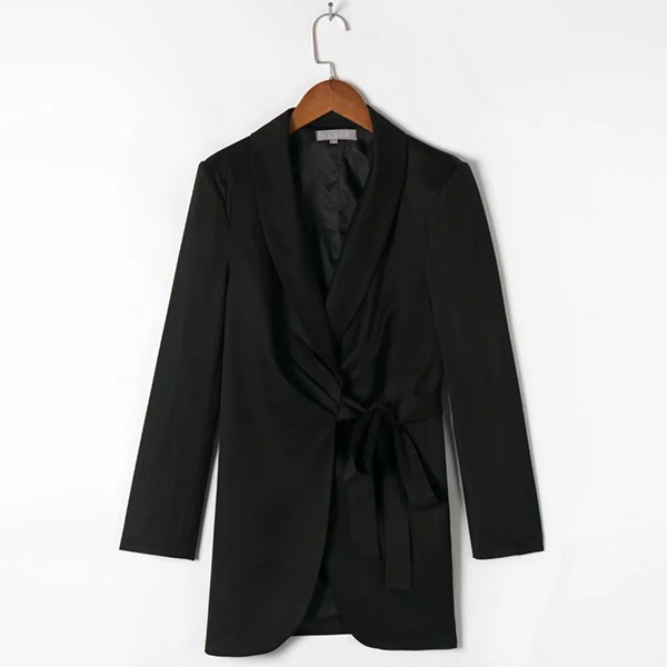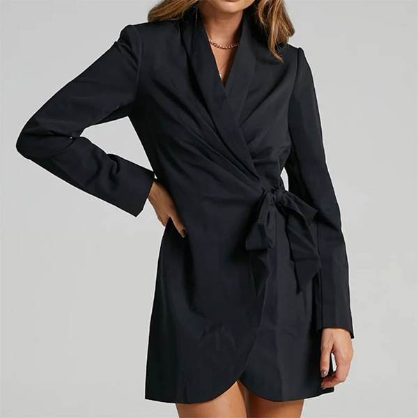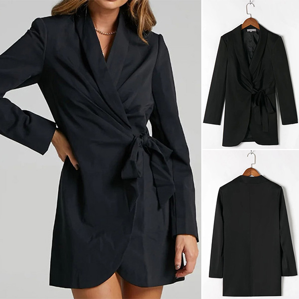 As for the working ladies,this suit dress would easily capture their mind. Comes with a classic,flattering black tone,finished with long sleeve,notched lapel and lace-up design,this suit dress is a good way to portray your confident and charming image.