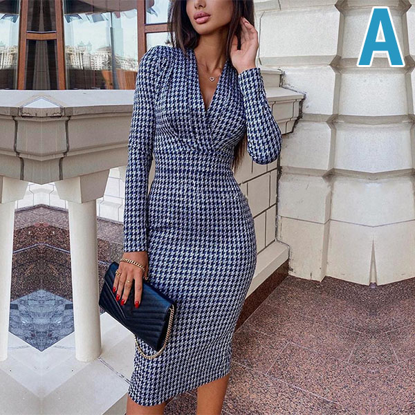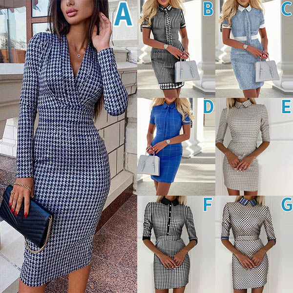 OL Style POLO Collar High Waist Slim Fit Plaid Dress