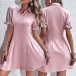 OL Style Ruffle Cuff Short Sleeve POLO Collar High Waist Solid Color Dress