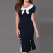 OL Style Short Sleeve Bowknot Round Neck Slim Fit Dress