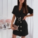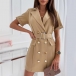 OL Style Short Sleeve Notched Lapel Double-breasted Slim Fit Dress