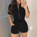 For your busy workdays,you have no need to worry about what to wear if you have this delicate romper in your wardrobe. It boasts a classic yet flattering black tone,with short sleeve,POLO collar and high waist design,this piece can showcase your slender figure while it exudes your style and charm.