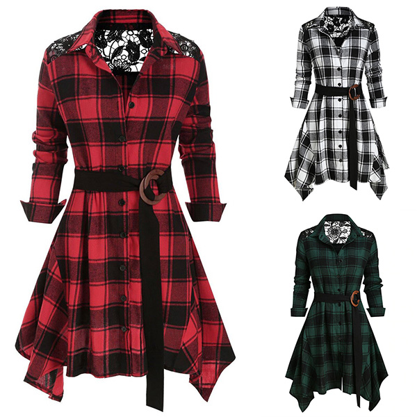 As for a delicate,stylish and charming working look,you can just have a try this shirt dress. The plaid element design makes it look popular and unique. Finished with long sleeve,POLO collar and irregular hem design,classic yet distinctive. You can add a girdle if you wanna look more stunning!