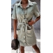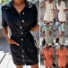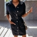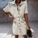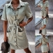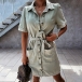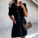 OL Style Short Sleeve POLO Collar Single-breasted Solid Color Slim Fit Shirt Dress