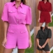 OL Style Short Sleeve POLO Collar Solid Color Shirt + High Waist Shorts Two-piece Set