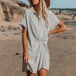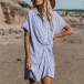 When you have this shirt dress in your team, you never have to sacrifice style over comfort. The stripe element and twisted design make this piece look so stylish and attractive. Finished with short sleeve,POLO collar and a loose silhouette,this dress definitely can give you a cozy yet stylish daily style.
