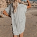 OL Style Short Sleeve POLO Collar Twisted Stripe Shirt Dress