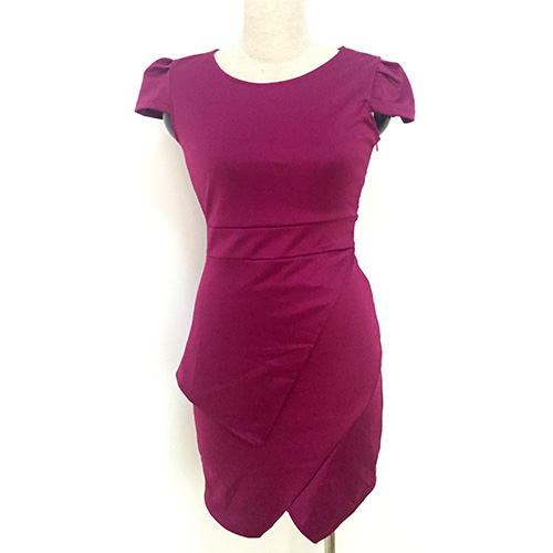 This dress features solid color style,with short sleeve,round neck,irregular hem and
