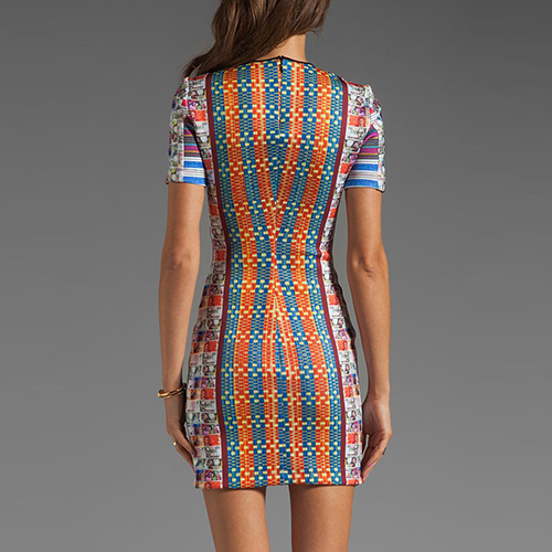 Styled with chic printed pattern,short sleeve,round neck and a fit silhouette,this dress can go a long way in your closet!