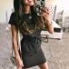 OL Style Short Sleeve Round Neck Solid Color Slim Fit Dress