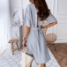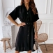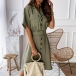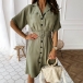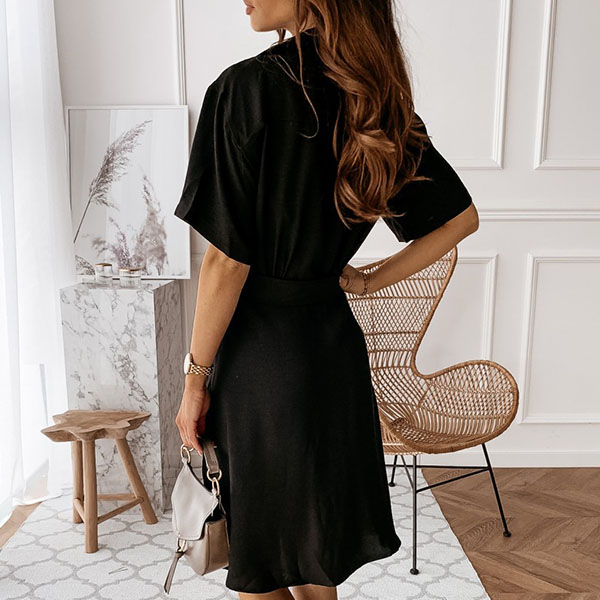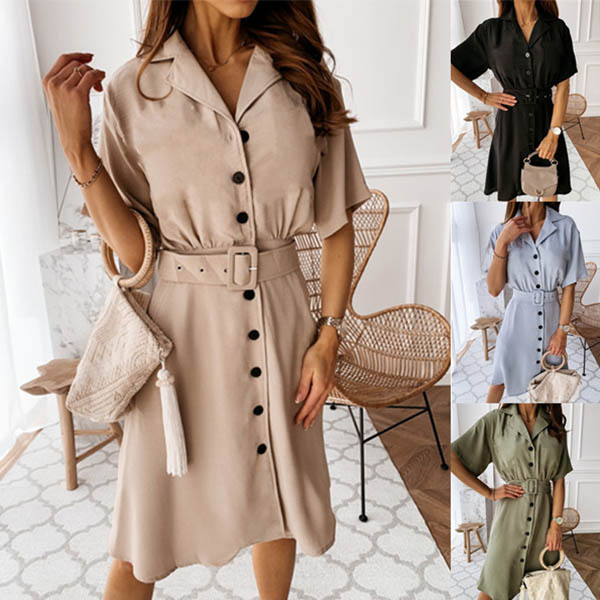 OL Style Short Sleeve Single-breasted Solid Color Shirt Dress