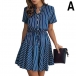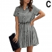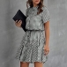OL Style Short Sleeve Stand Collar Printed Shirt Dress