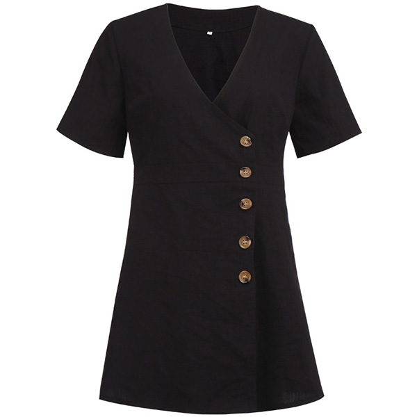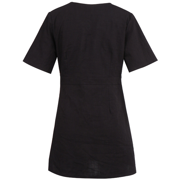 For a delicate and charming working look,you can just slip into this OL style dress. It boasts a solid color,with short sleeve,v-neck and front-button design,this dress knows how to make you look elegant yet generous.