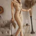 When stepping into your office with this elegant and delicate jumpsuit,you can easily arouse your colleagues' envious eyes. It comes with a solid color,finished with sleeveless,notched lapel,high waist and a fit silhouette,this piece not only can portray your slender figure,but also can exude your flirty and feminine side. So why not slip into this piece to maintain your personality and style?