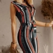 Thanks to the high waist and fit silhouette,your slender figure can have a full display in this jumpsuit. It is finished with sleeveless,notched lapel and stripe element,this cozy yet stylish piece is perfect fit for you no matter for your busy workdays or casual weekend out.