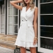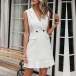 OL Style Sleeveless Notched Lapel Ruffle Hem Slim Fit Dress