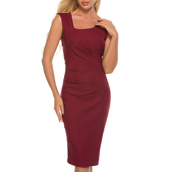 For your busy workdays,this elegant and delicate dress is your wise choice. Solid color style,with sleeveless,round neck and a fit silhouette,this dress can showcase your slender figure while it portrays your elegant and charming image. Trust me,adding this dress to your wardrobe would be a wise choice.