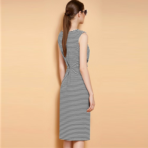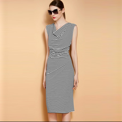 will never fade out. This striped dress features unique collar,sleeveless and slim fit design.