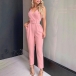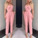 As for a delicate,elegant and charming working look,you can just have a try this jumpsuit! Comes with a sweet pink tone,finished with sleeveless,v-neck and high waist design,this piece only can showcase your slender figure,but also can exude your flirty and feminine side.