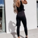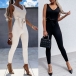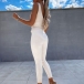OL Style Sleeveless V-neck High Waist Solid Color Slim Fit Jumpsuit