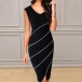 OL Style Sleeveless V-neck Slim Fit Striped Dress