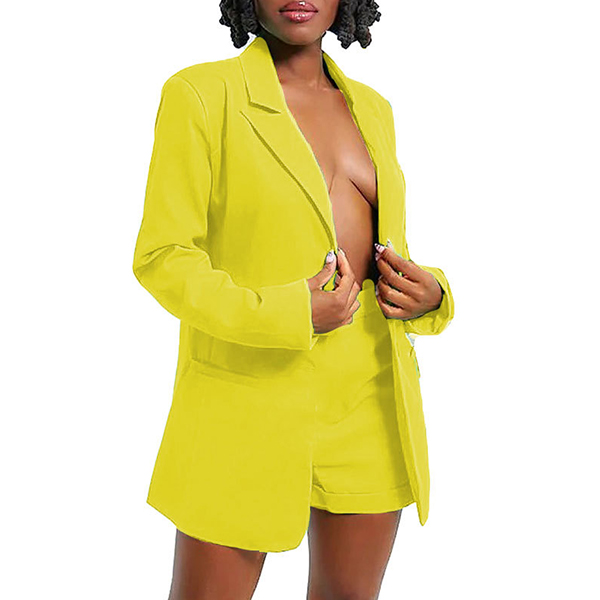OL Style Solid Color Blazer + Shorts Suit