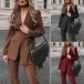 OL Style Solid Color Long Sleeve Blazer Coat + Pants Two-piece Set