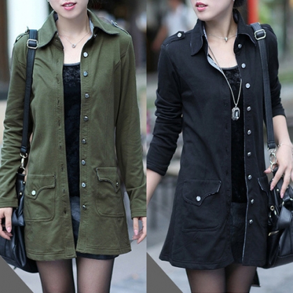 Update your wardrobe with this trench coat. It features solid color style,outfitted with long sleeve,