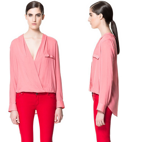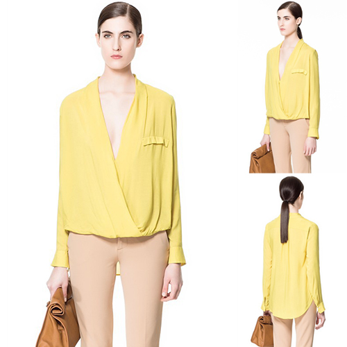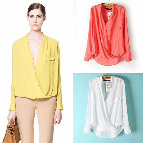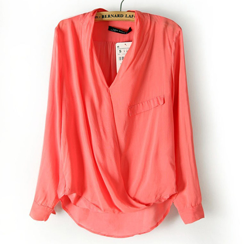 Solid color style,with long sleeve,high-low hem and v-neck design,simple but stylish and chic.