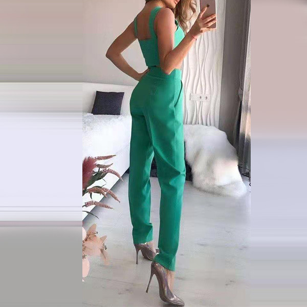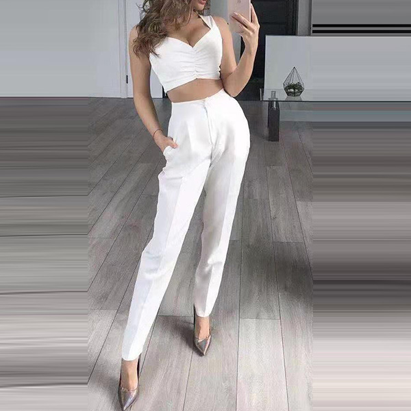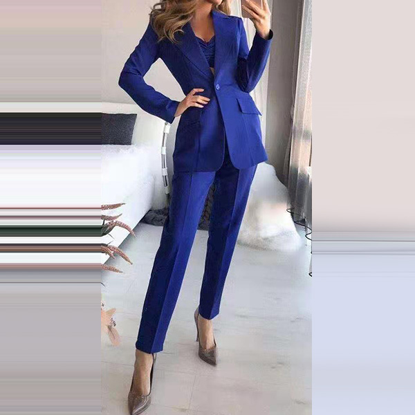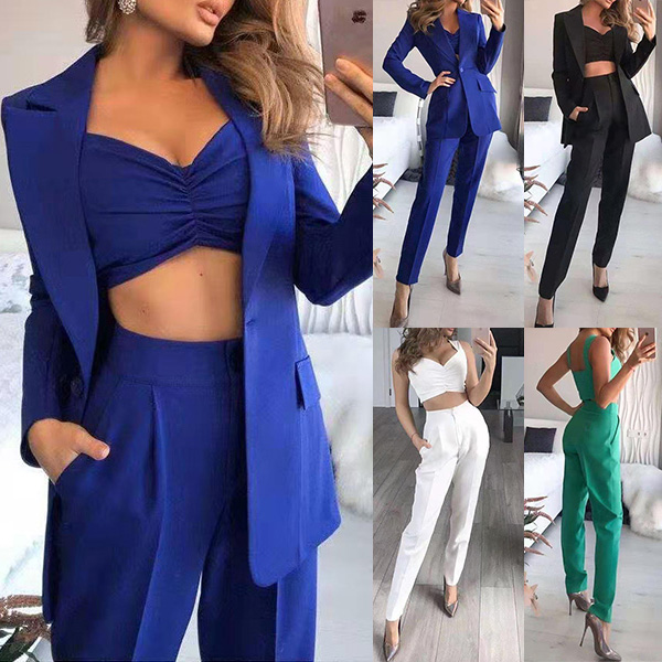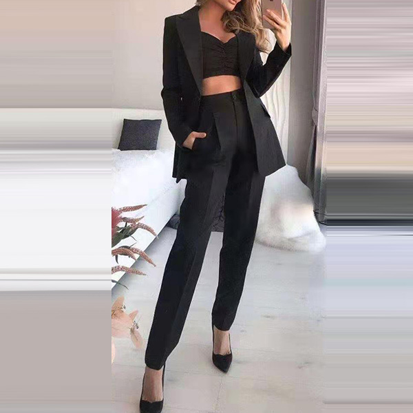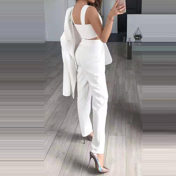 When stepping into your office with this three-piece set,you can easily win your colleagues' envious eyes. Solid color tone design makes it look elegant yet generous. Including a backless sling crop top,a blazer suit and a high waist pants,this two-piece set is a good weapon to showcase your slender waistline while it exude your style,charm and personality.