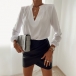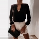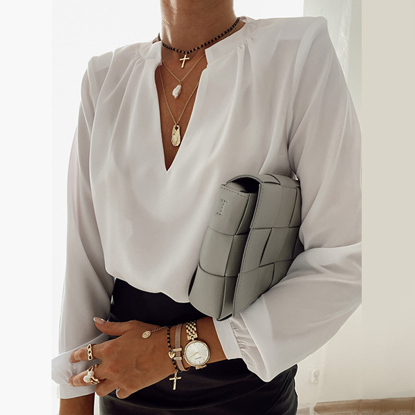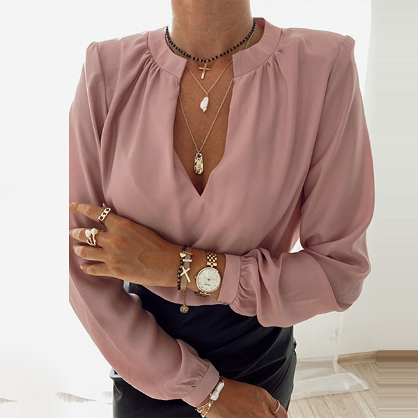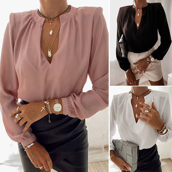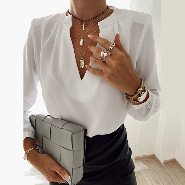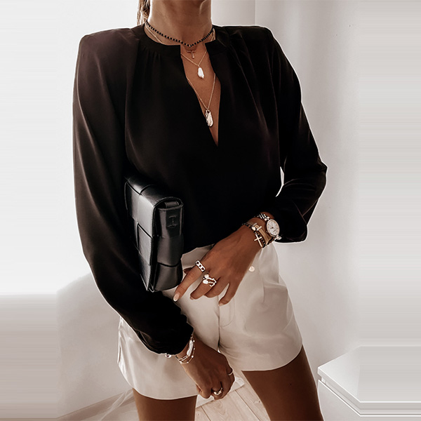 The time is very precious in the morning for these office ladies.Having this piece in your wardrobe will be a big help for you.Thanks to its all-match style, you will be not be bothered by clothes matching.Solid color style,finished with long sleeve,v-neck and a clean silhouette,this piece can exude your charm.Match it with your cherished necklace and favourite pants to start the busy office life!