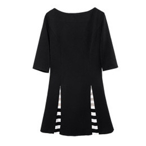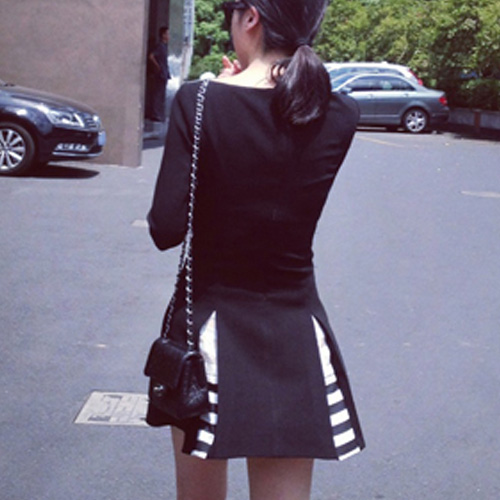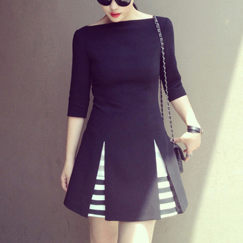 It features sexy slash neckline,long sleeve,hemline with stripes spliced design.