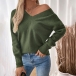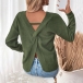 Fashion V-neck Long Sleeve Back Knot Backless Slit Sweater