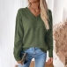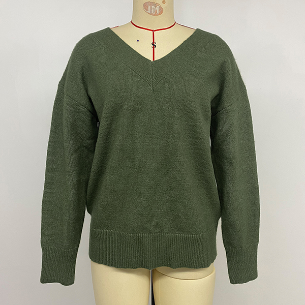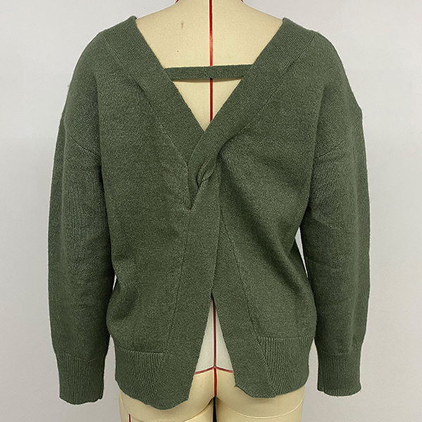This Green Sweater is a trendy and stylish piece that combines cozy knitwear with modern design details. The combination of the V-neckline, back knot, and slit design elements makes this sweater a fashionable and eye-catching piece. This sweater is perfect for adding a touch of style and flair to your outfit. Pair it with high-waisted jeans or trousers for a casual and chic look, or wear it with a skirt for a more dressed-up ensemble.